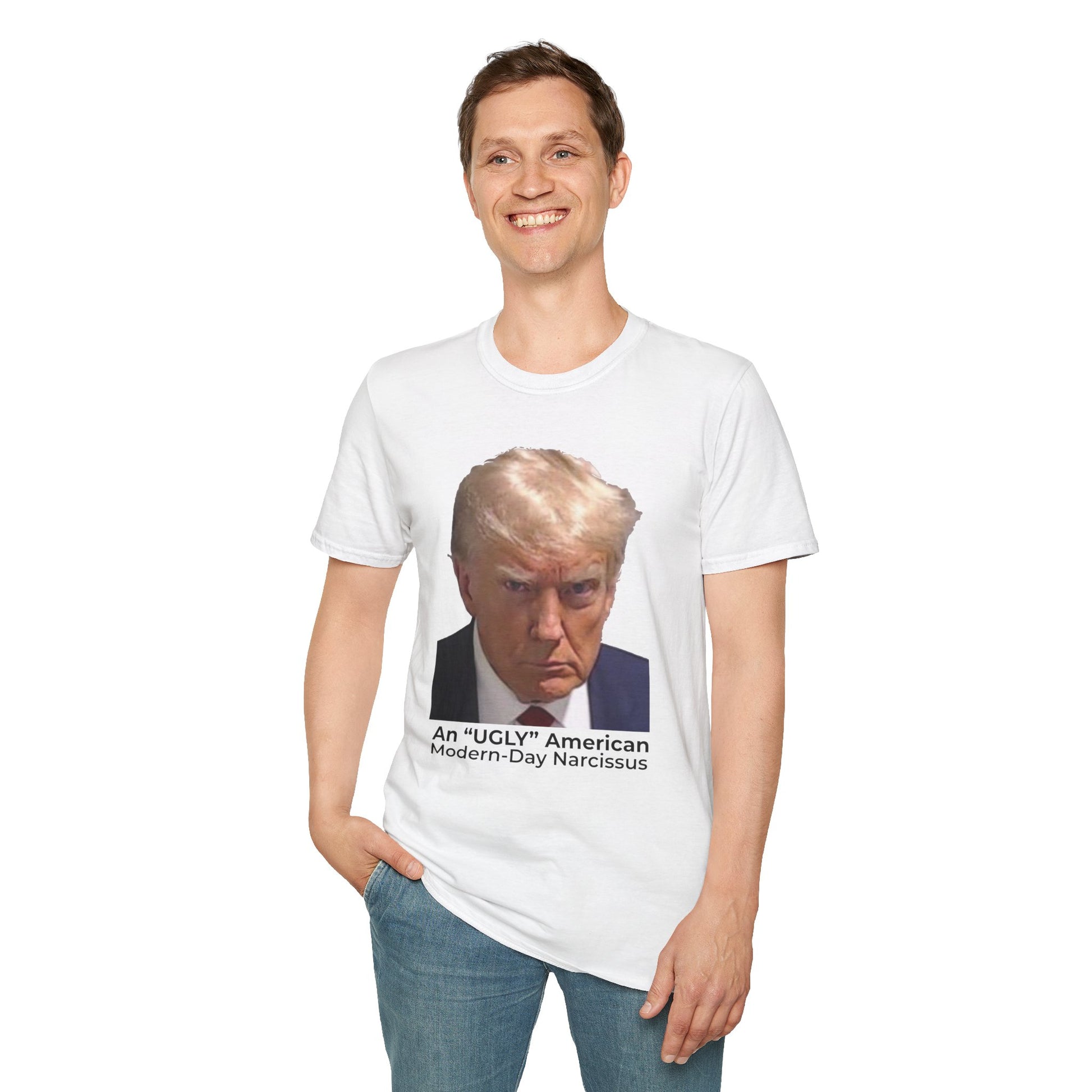 An “Ugly” American & Modern-Day Narcissus T-Shirt – Two-Sided Political Satire Tee