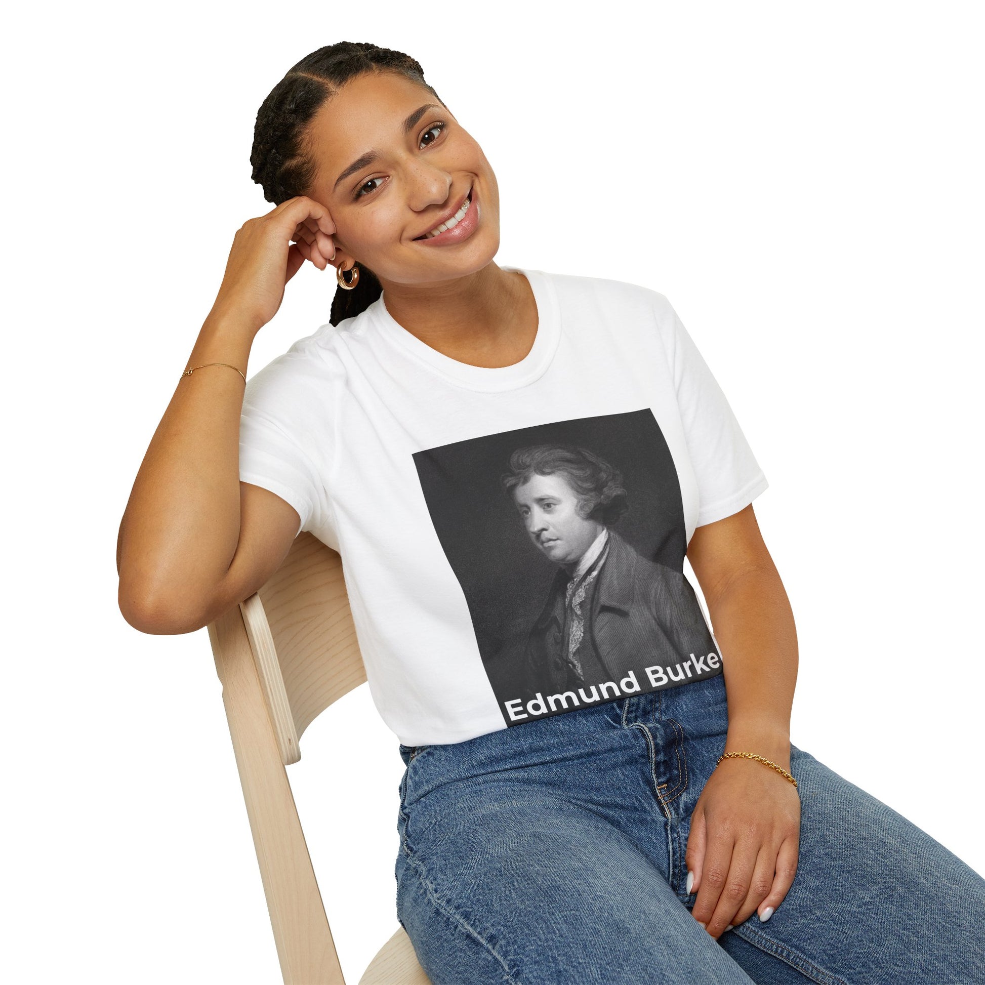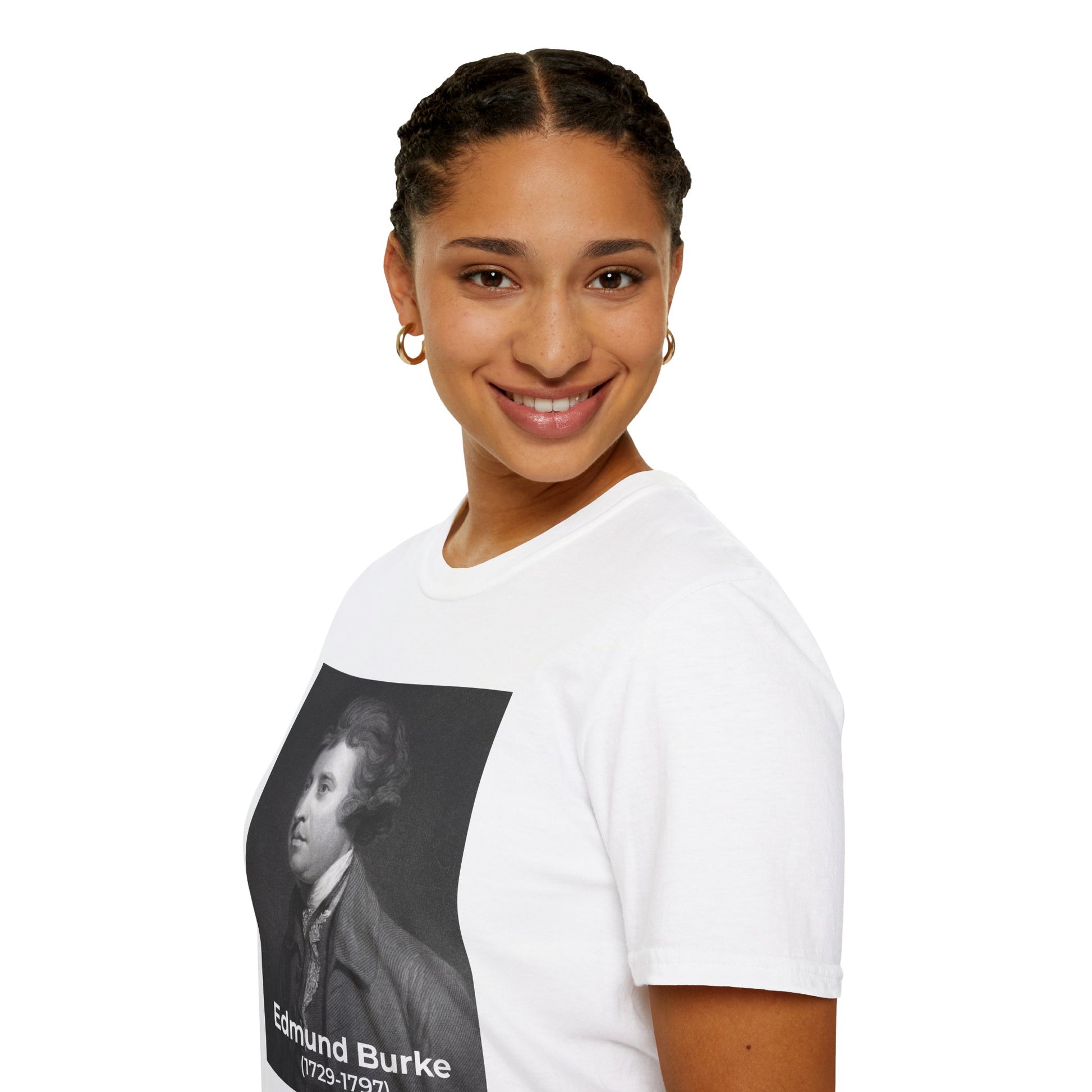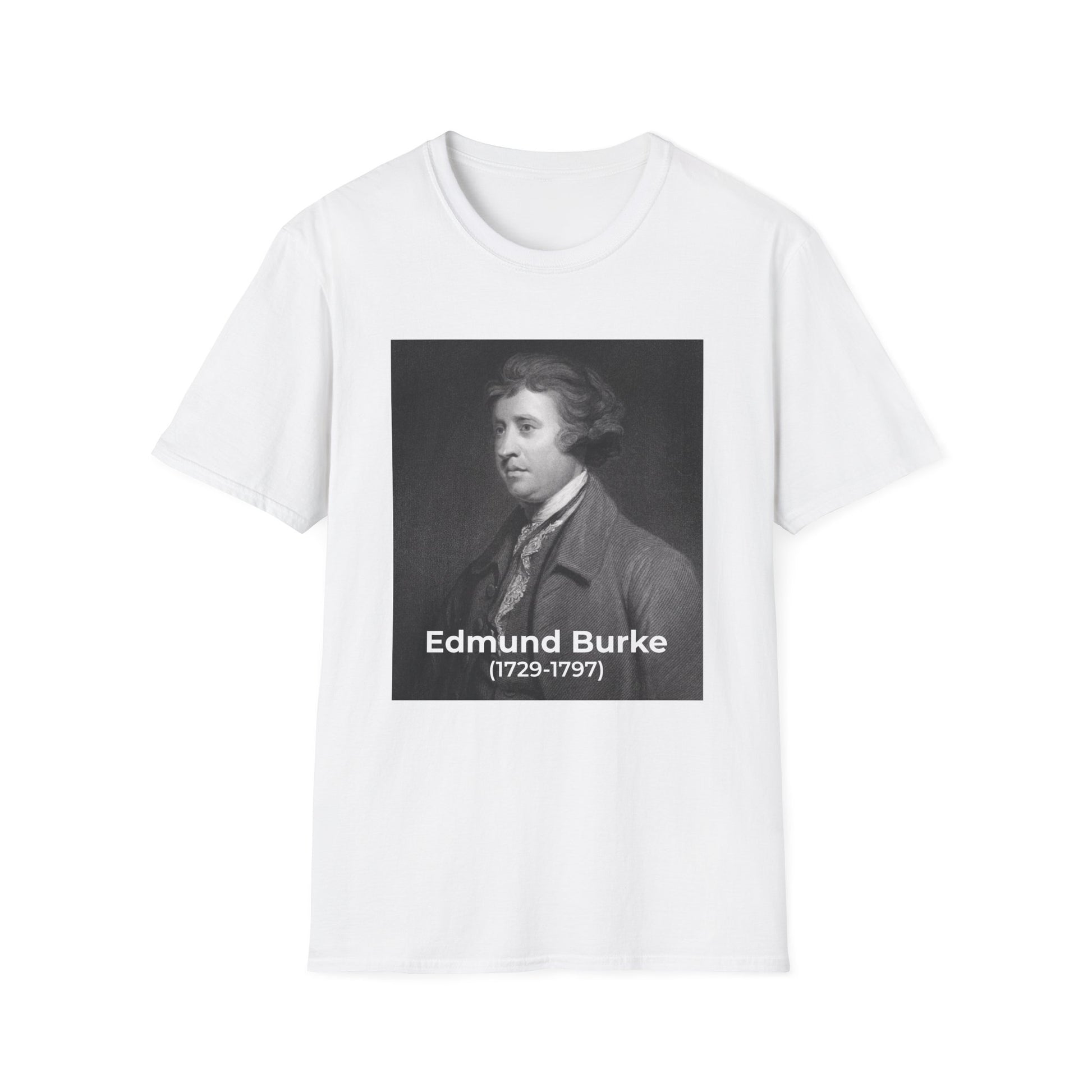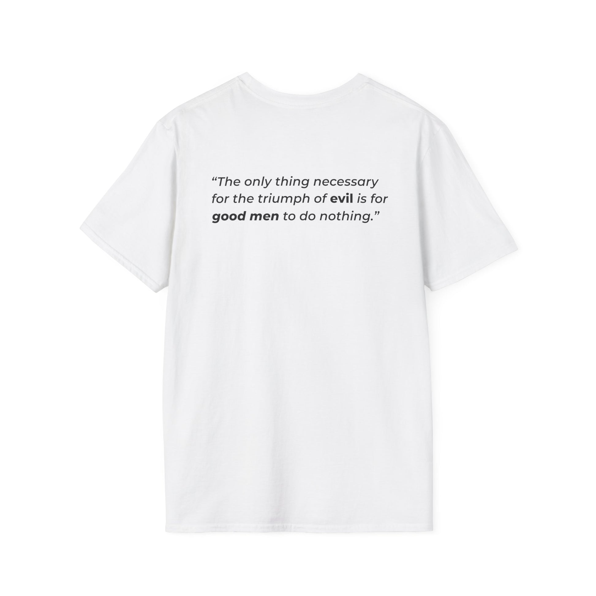 Make a bold statement with this Edmund Burke double-sided T-shirt. On the front, a portrait of the influential statesman and philosopher (1729–1797). On the back, his iconic quote: “The only thing necessary for the triumph of evil is for good men to do nothing.”
