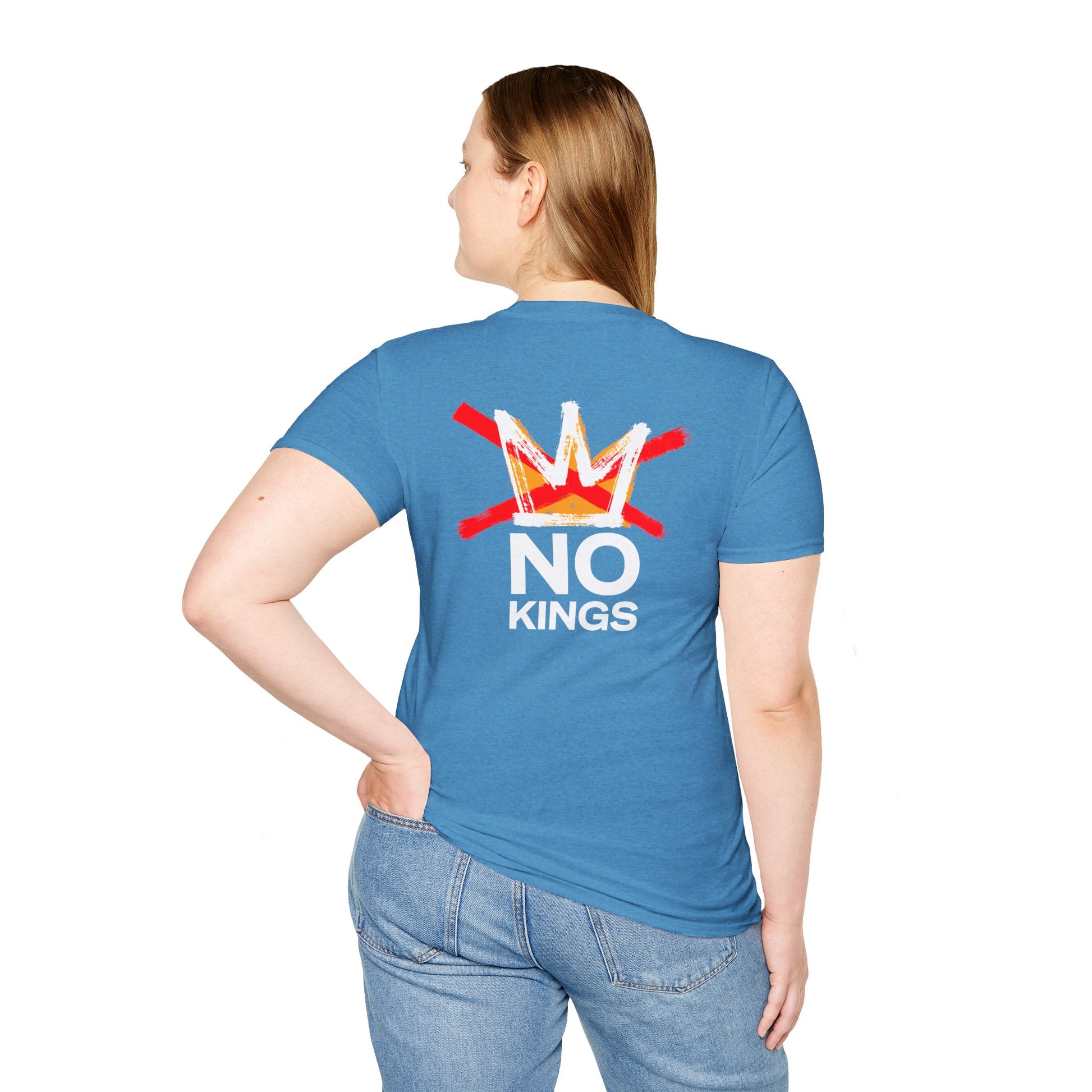 The No Kings crown, violently scratched out in red, delivers a clear message: America rejects tyranny, concentration of power, and political obedience. A reminder that sovereignty belongs with the people — not monarchs, not demagogues, not strongmen.