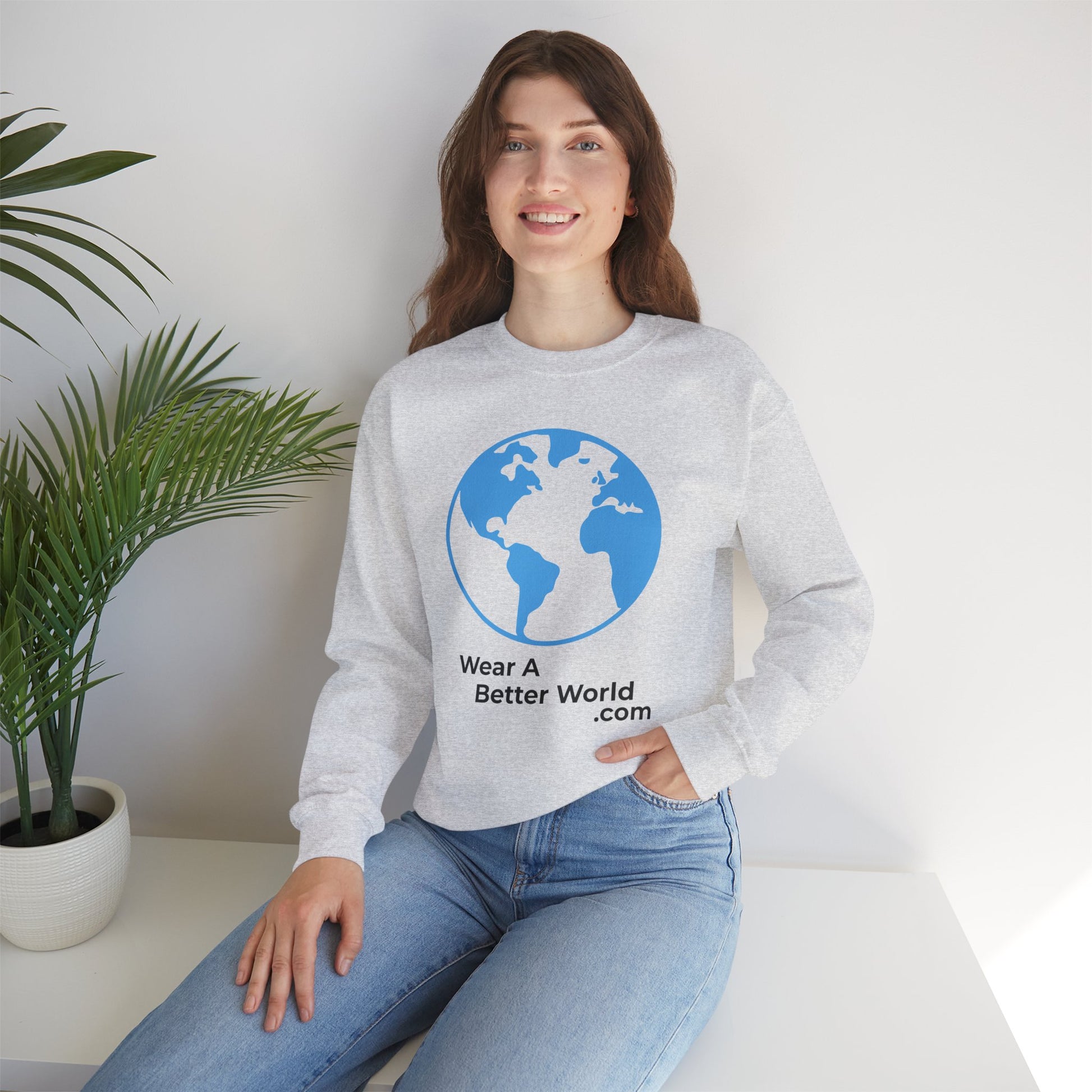 A clean blue globe graphic with WearABetterWorld.com — a reminder that our actions ripple beyond borders.