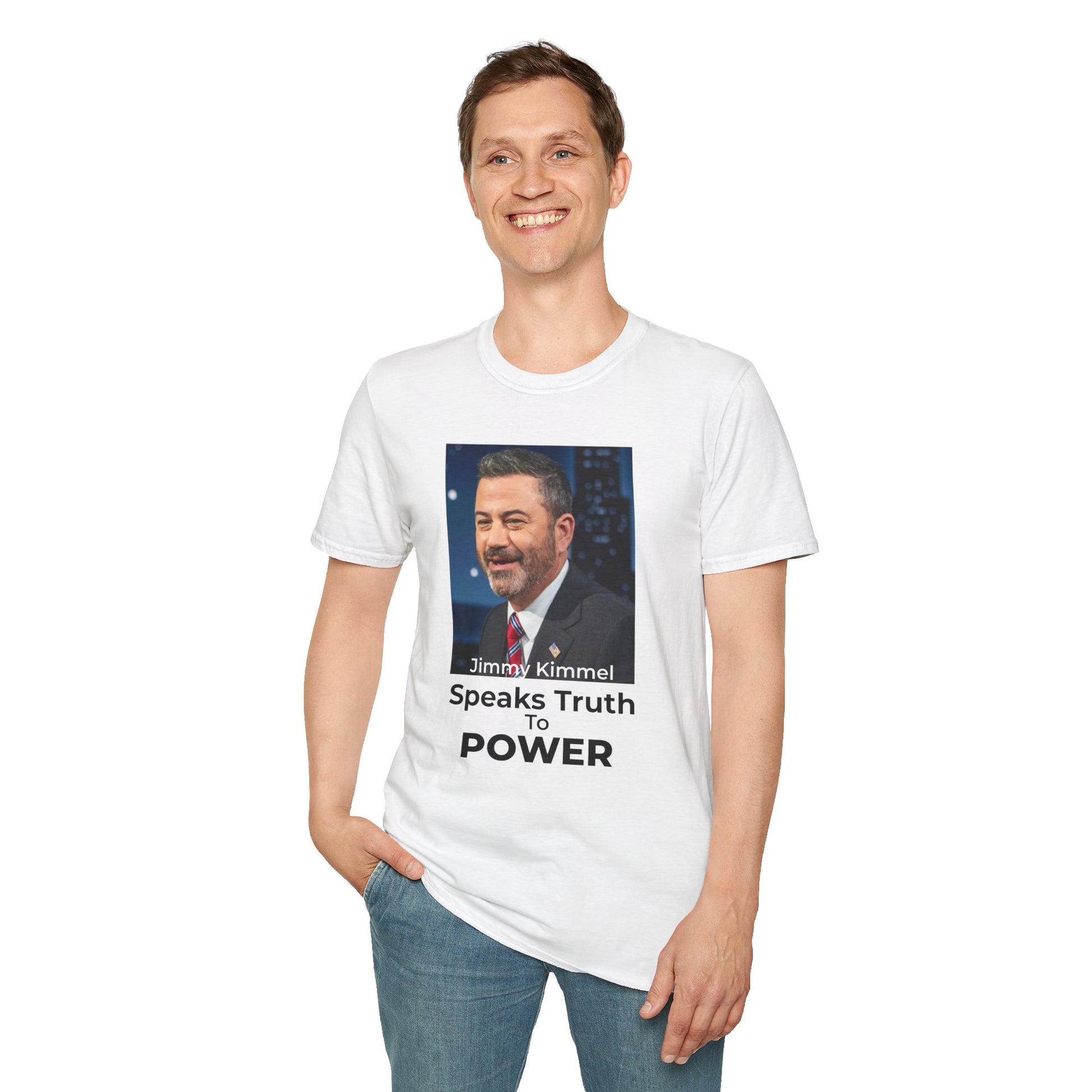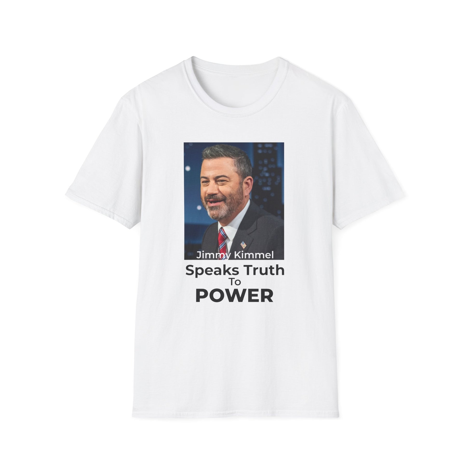 Stand up for free speech and the power of satire with this bold double-sided Jimmy Kimmel T-Shirt.
