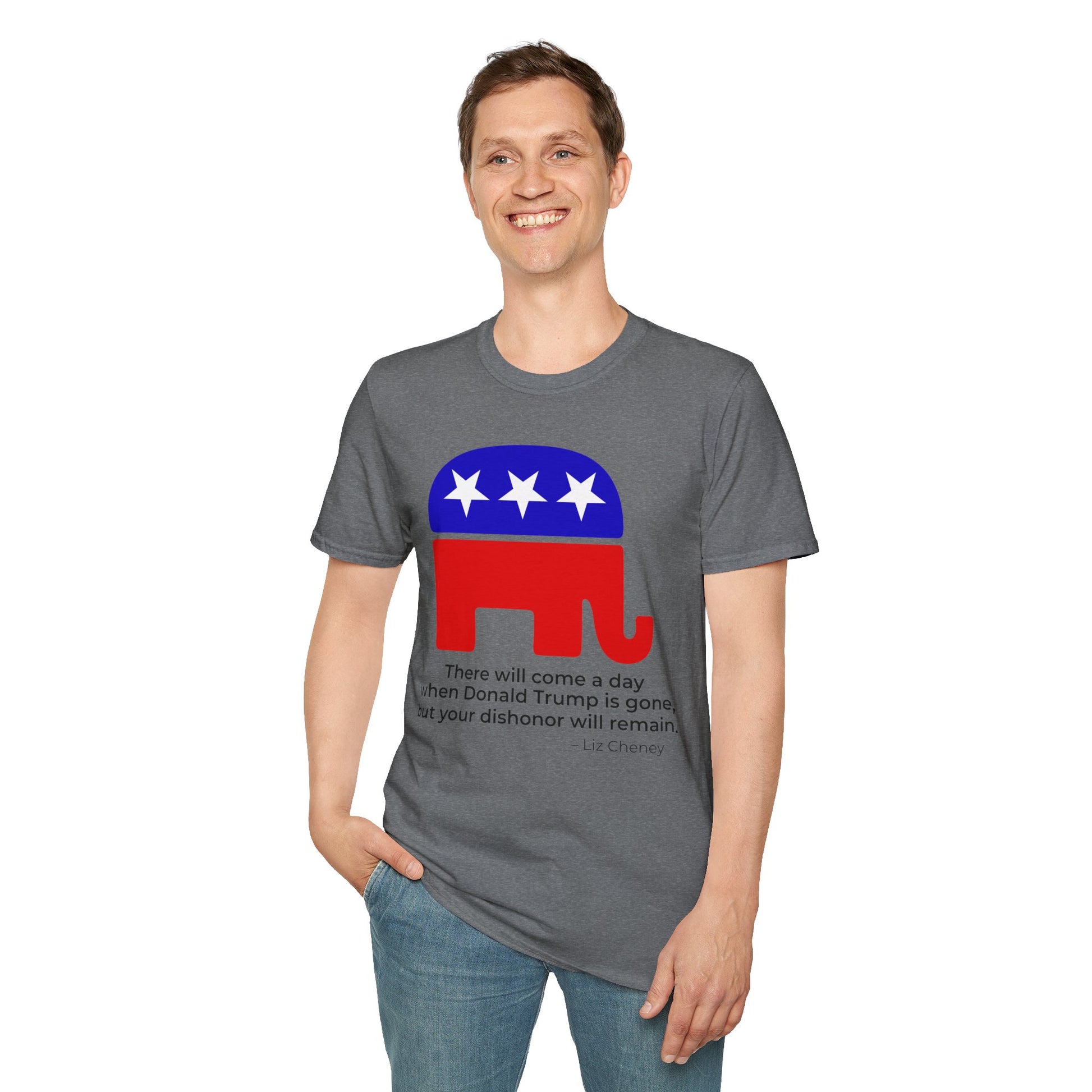 Liz Cheney Dishonor Will Remain Tee – Republican Accountability Quote Shirt (Graphite Heather)