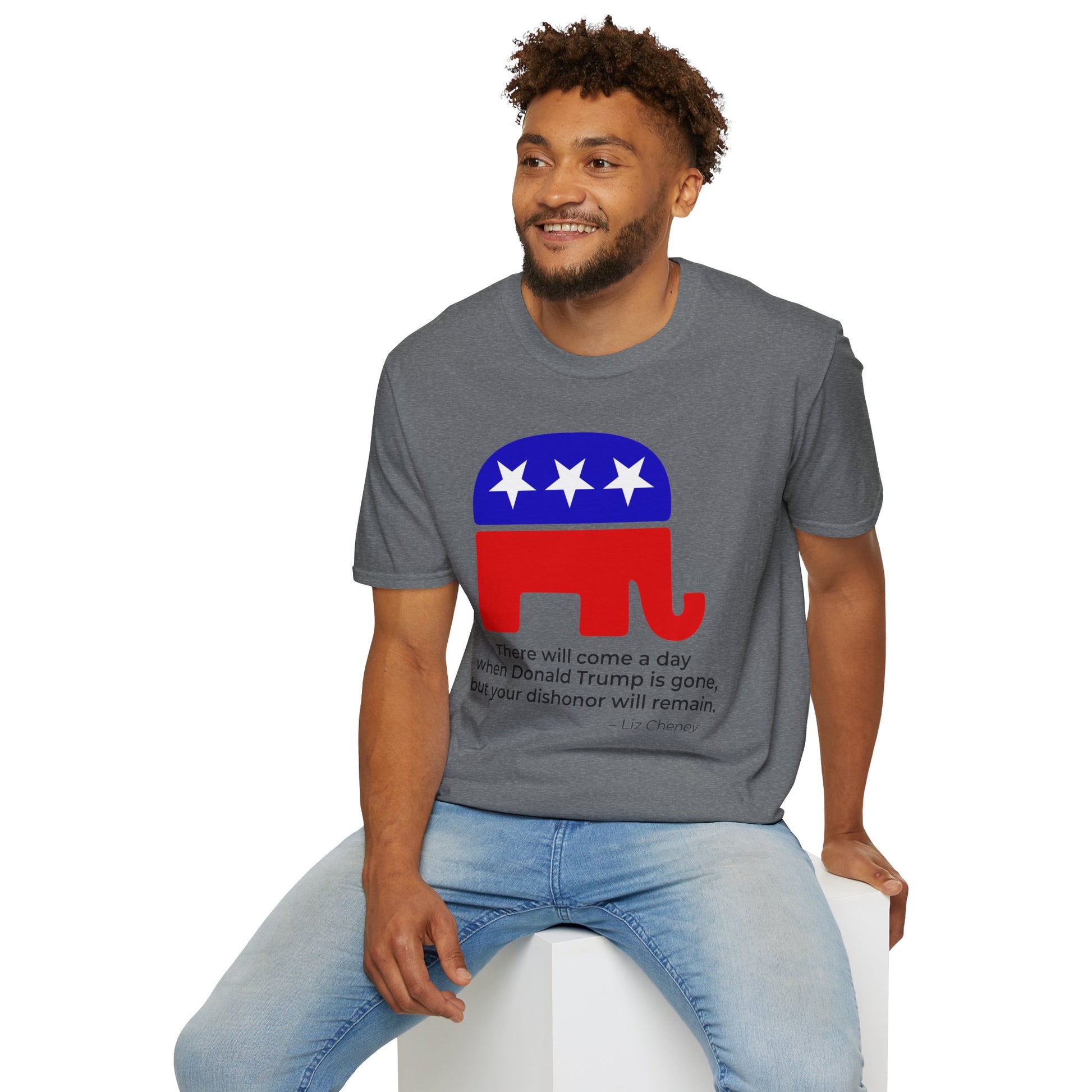 This statement tee features a stark Republican elephant graphic paired with one of the most consequential warnings delivered from within the party itself.