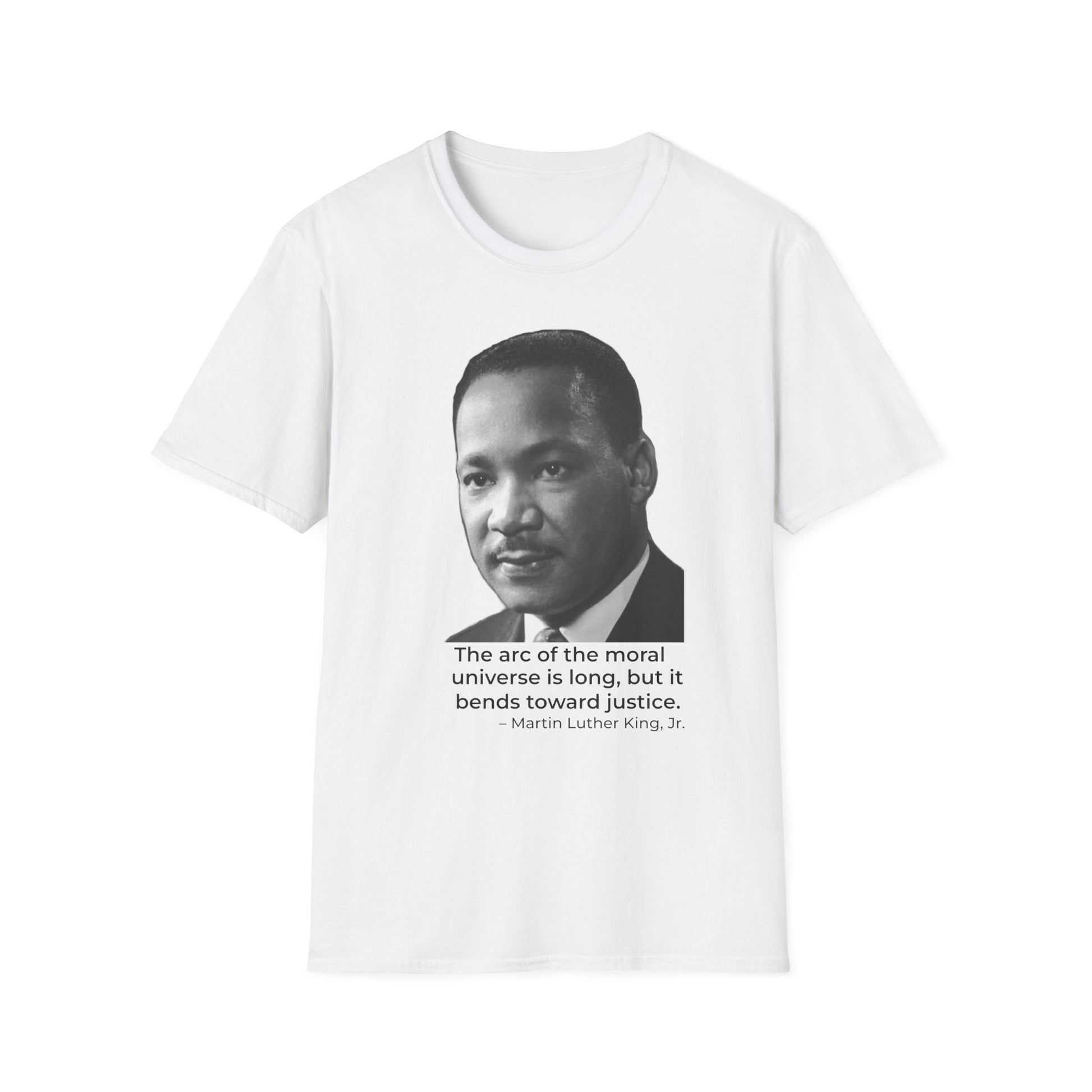 Martin Luther King Jr. Moral Arc Quote Tee – Justice Portrait Shirt