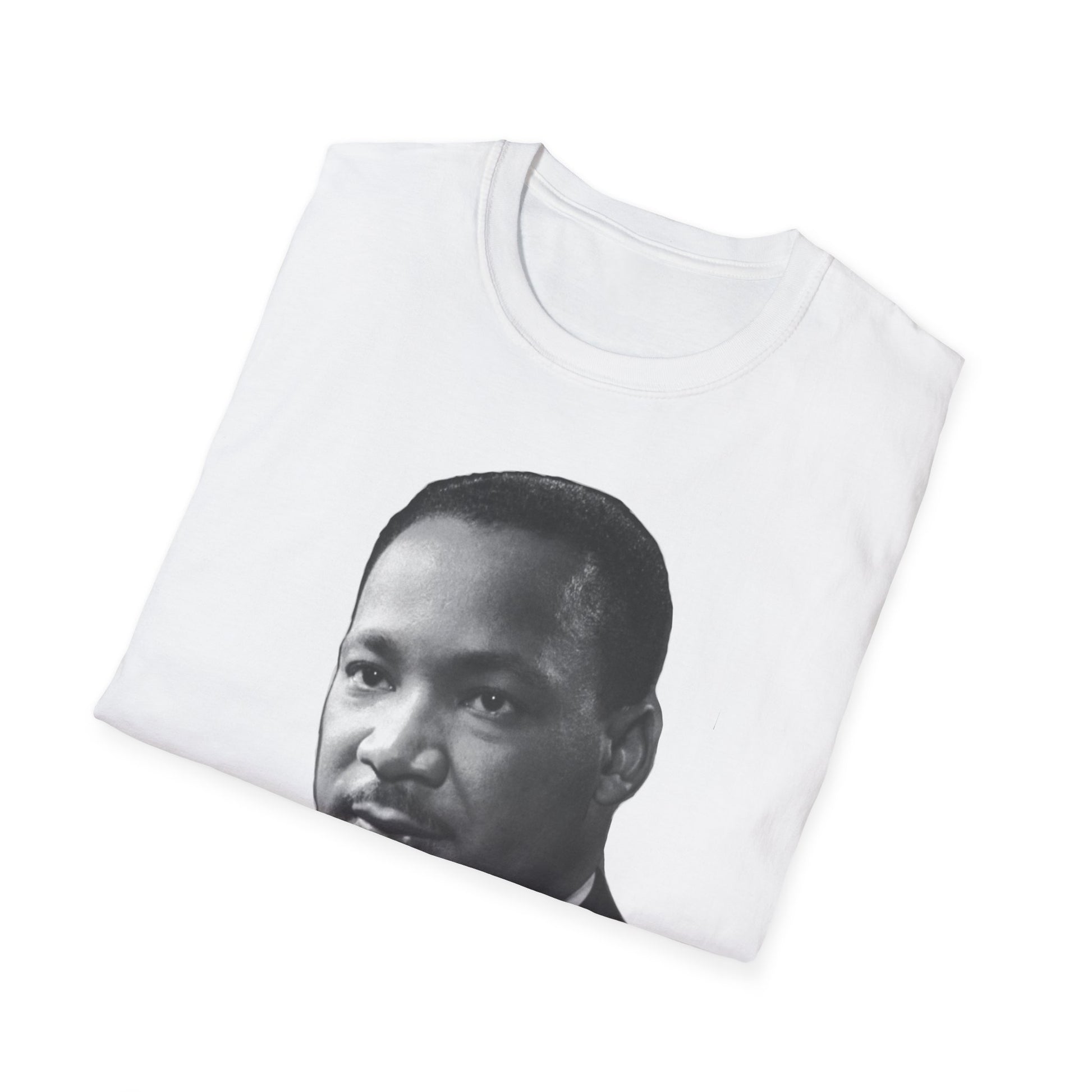 A minimalist portrait tee honoring Martin Luther King Jr. and one of his most enduring reflections on justice: