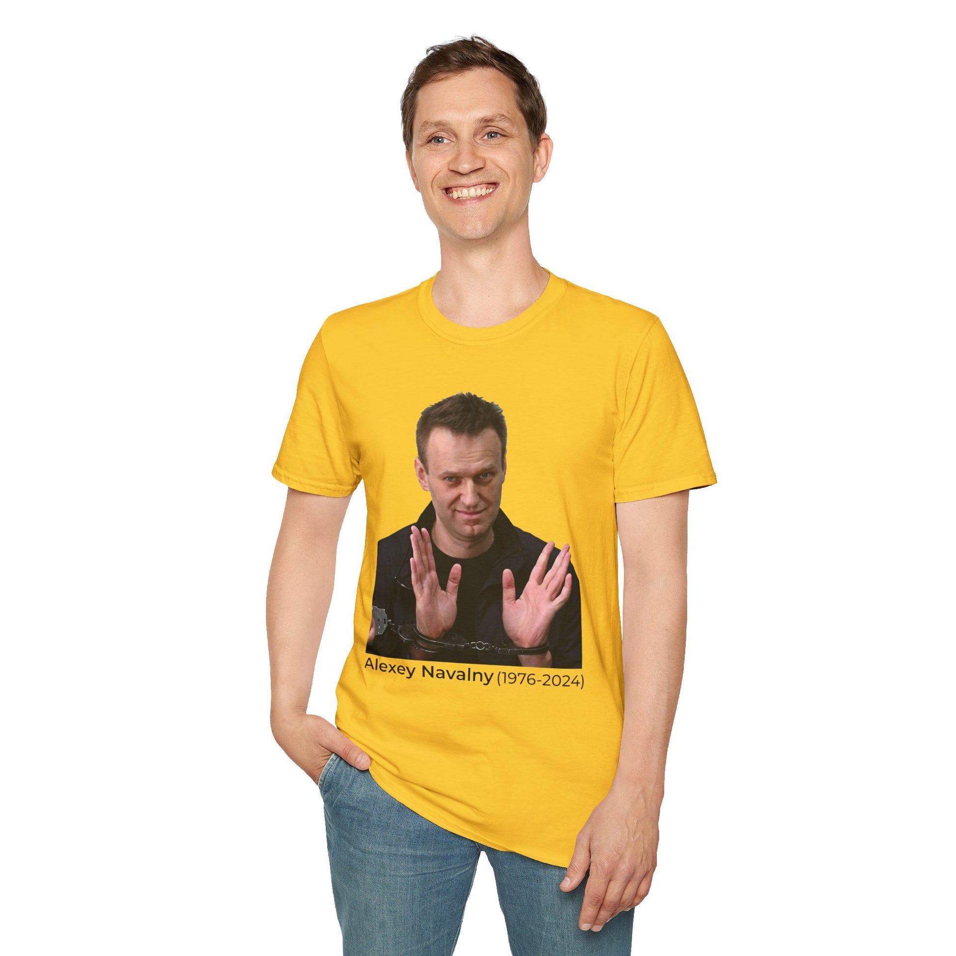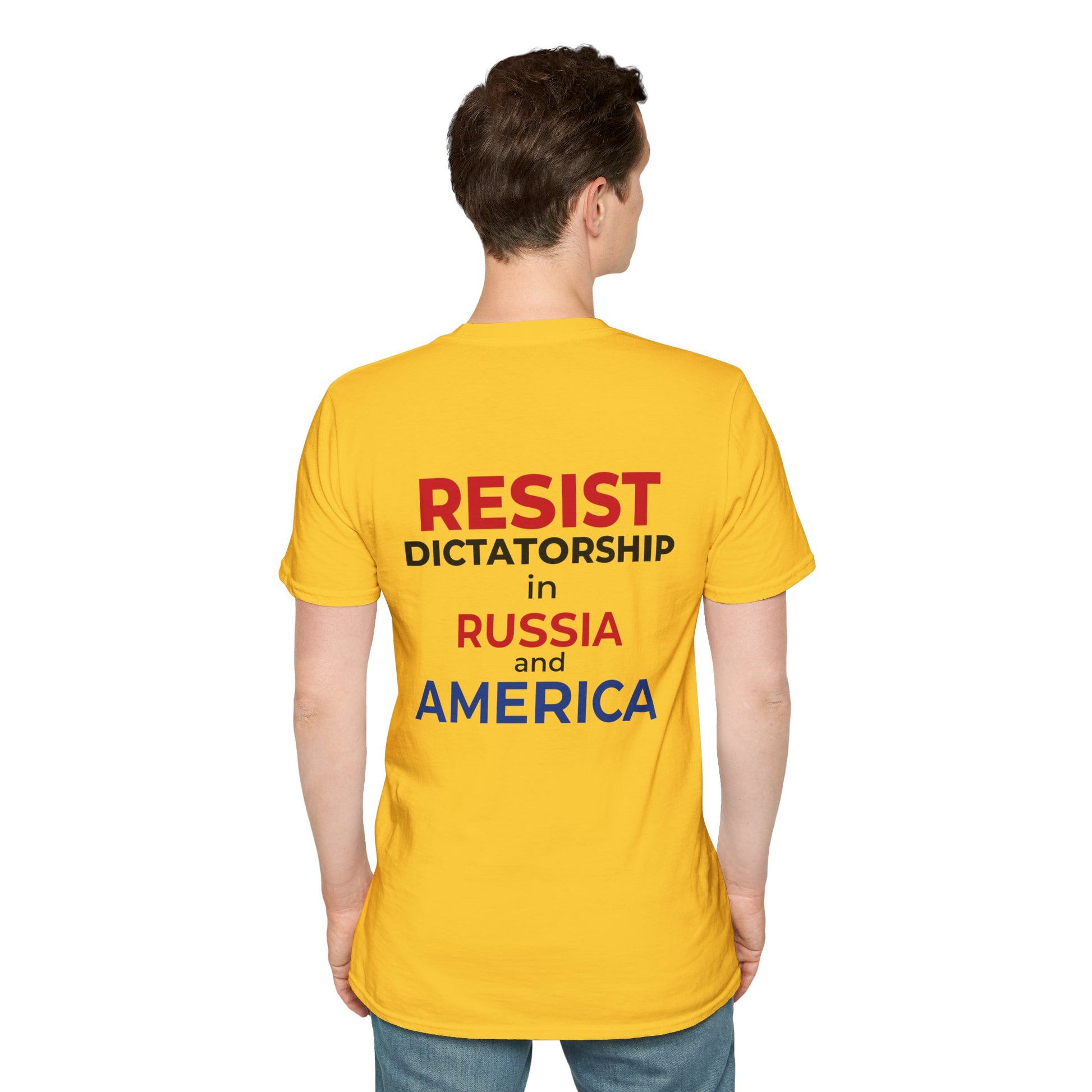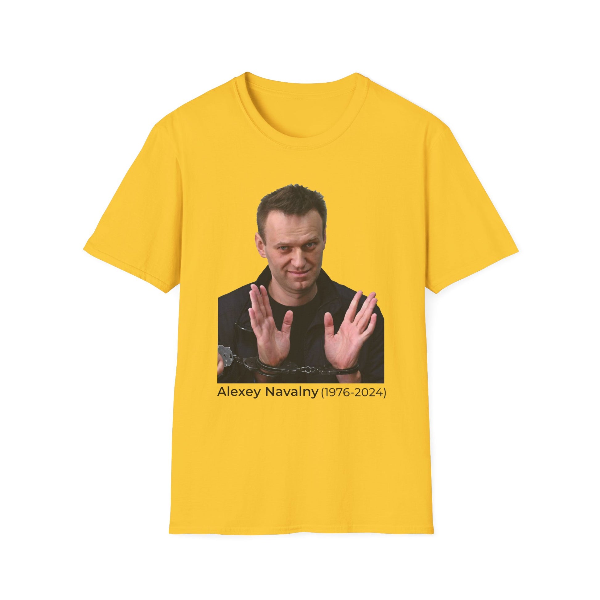 Make your voice visible with this powerful “Resist Dictatorship” tribute daisy yellow T-shirt. Featuring a striking image of the late Russian opposition leader in handcuffs on the front and the bold message “Resist Dictatorship in Russia and America” on the back, it’s more than apparel—it’s a wearable protest against tyranny, whether foreign or domestic.