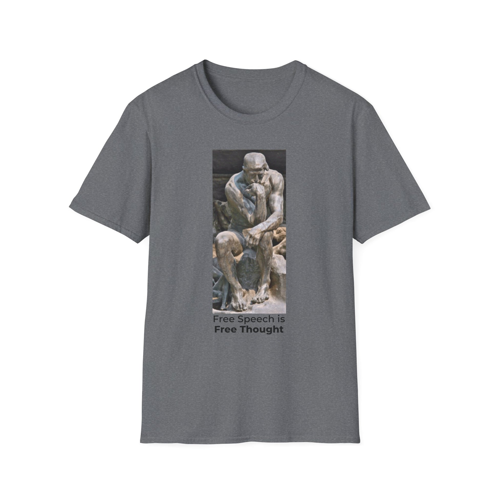 Front Design Rodin’s iconic Thinker captured in a classic vertical portrait, paired with the message Free Speech Is Free Thought. A clean, powerful reminder that open expression fuels open minds.