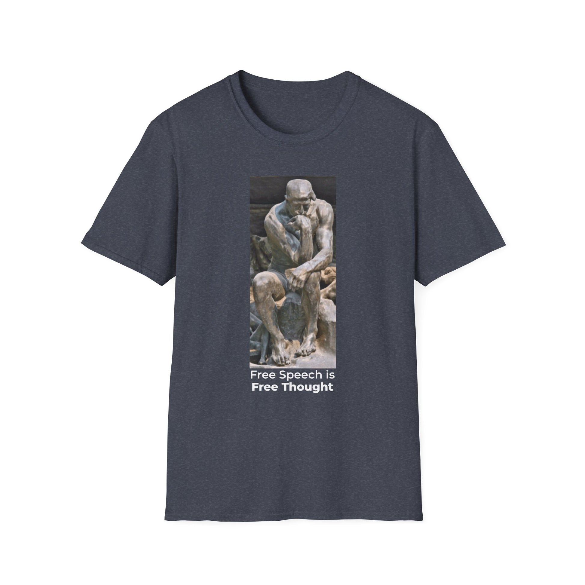 Thinker Statement T-Shirt I – Free Speech Is Free Thought in Heather Navy