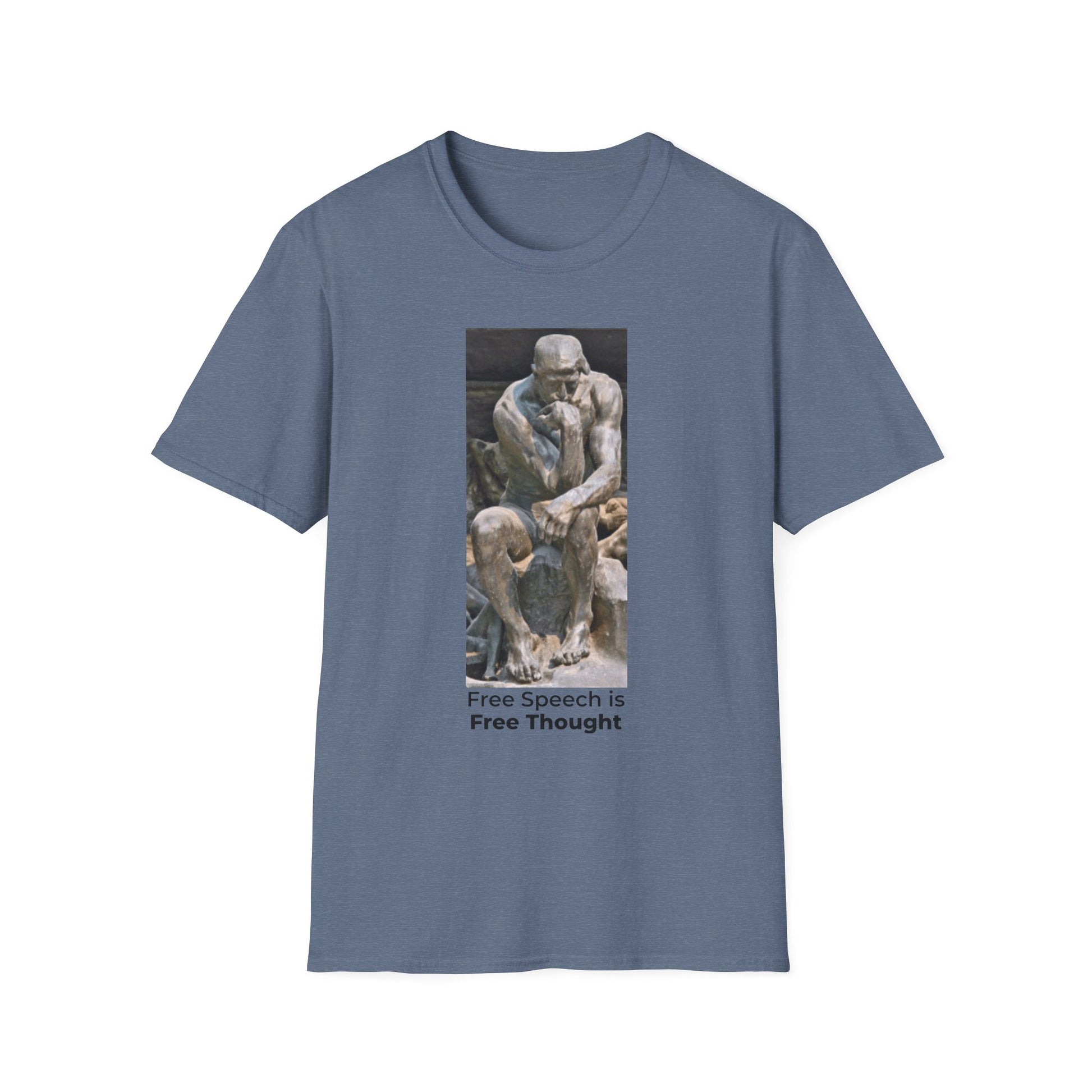 Thinker Statement T-Shirt I – Free Speech Is Free Thought in Heather Indigo