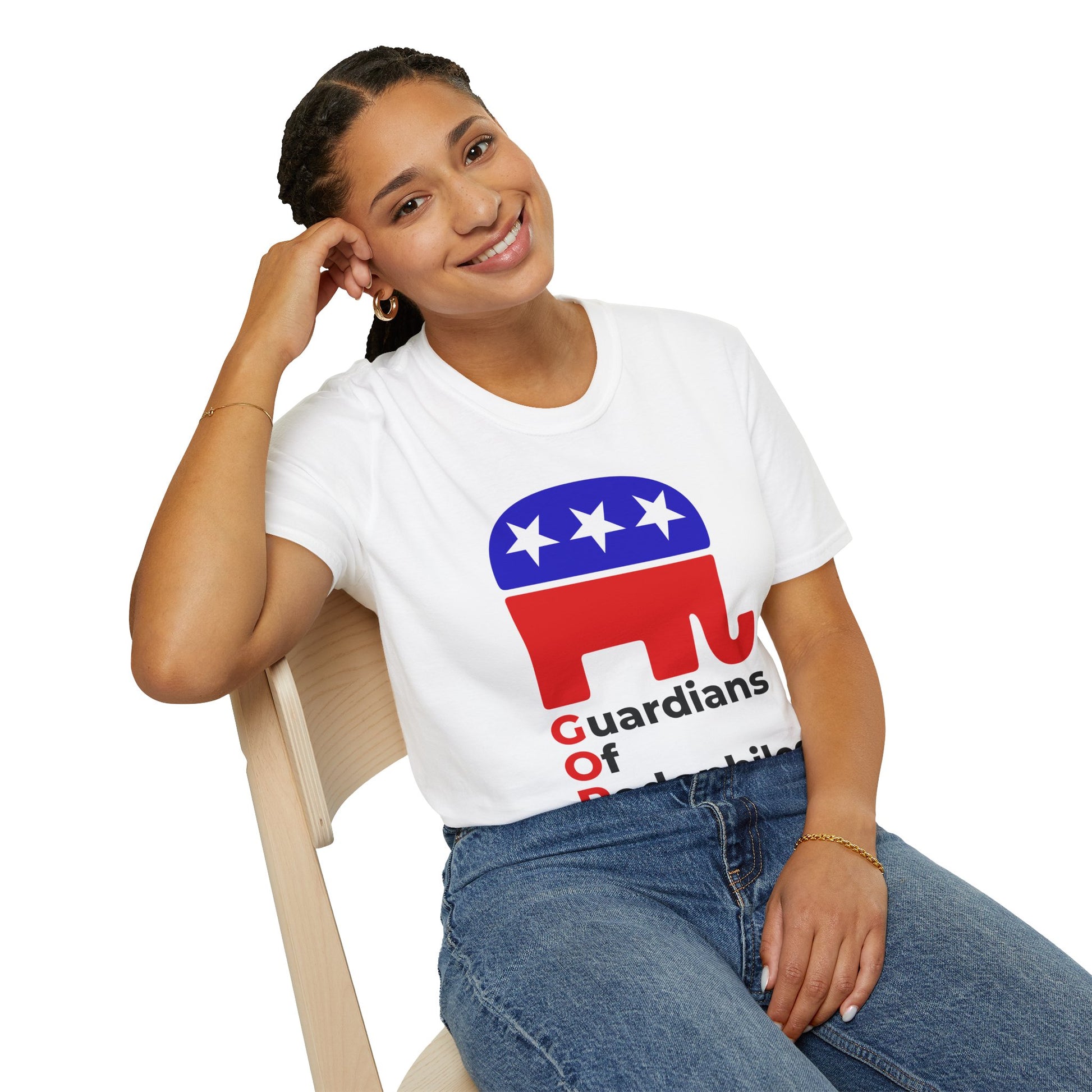 Front: The red, white and blue GOP elephant above the words Guardians Of Pedophiles — a sharp critique of political hypocrisy and moral rot. Back:RELEASE. THE. EPSTEIN. FILES. — a demand for transparency and truth.