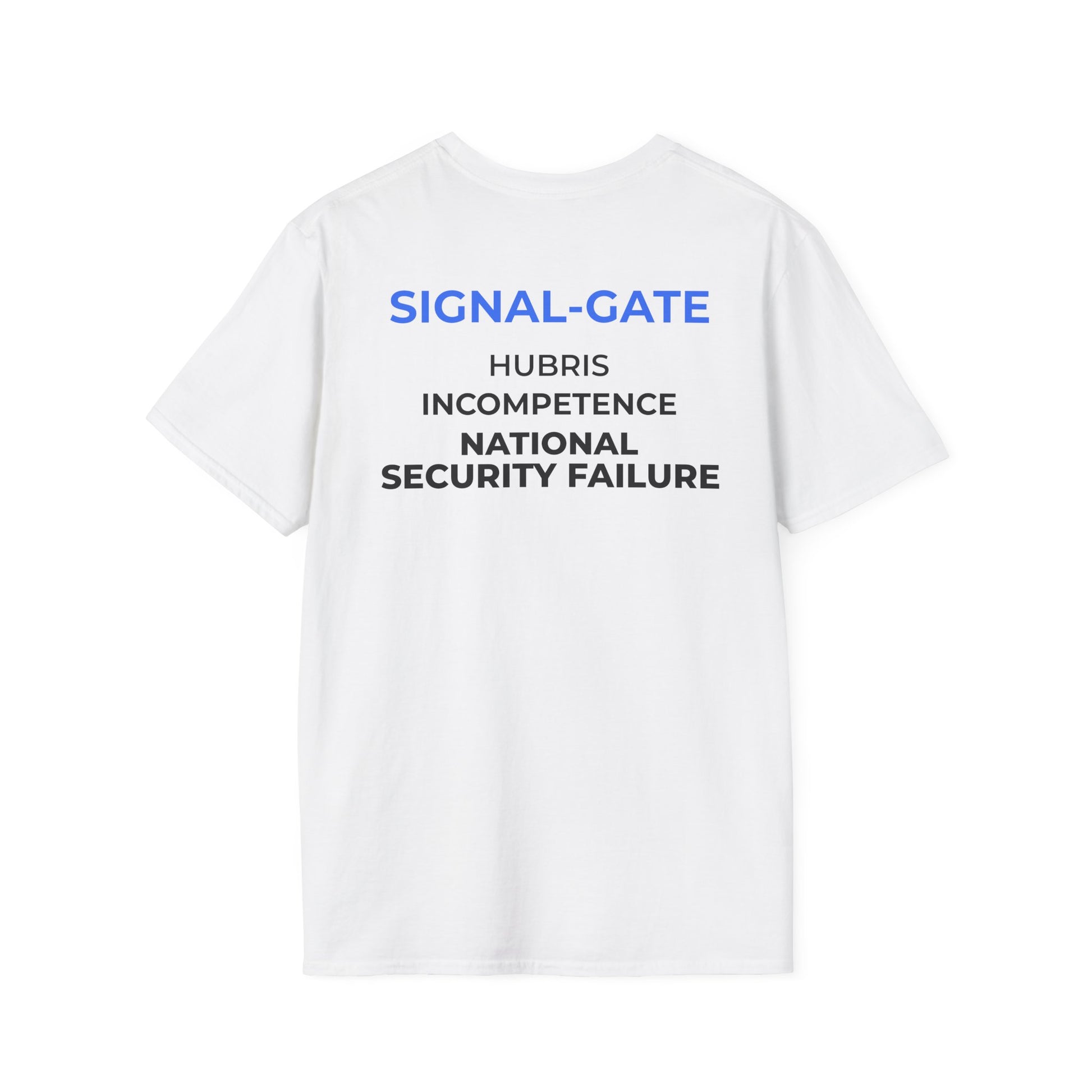 Front: Hear the Signal. In the Noise. Back: SIGNAL-GATE – Hubris. Incompetence. National Security Failure.