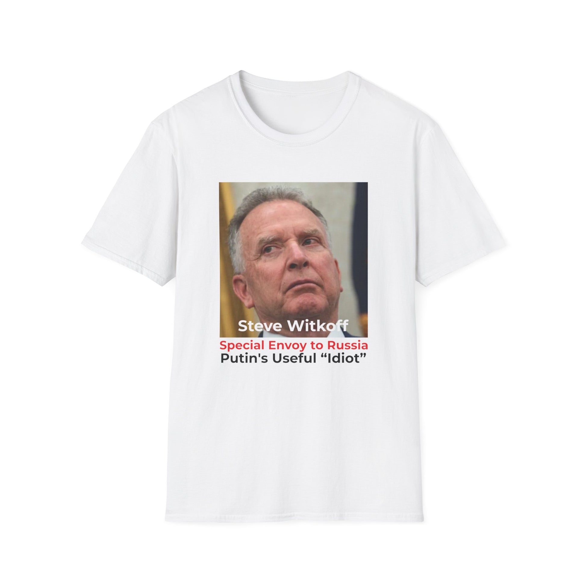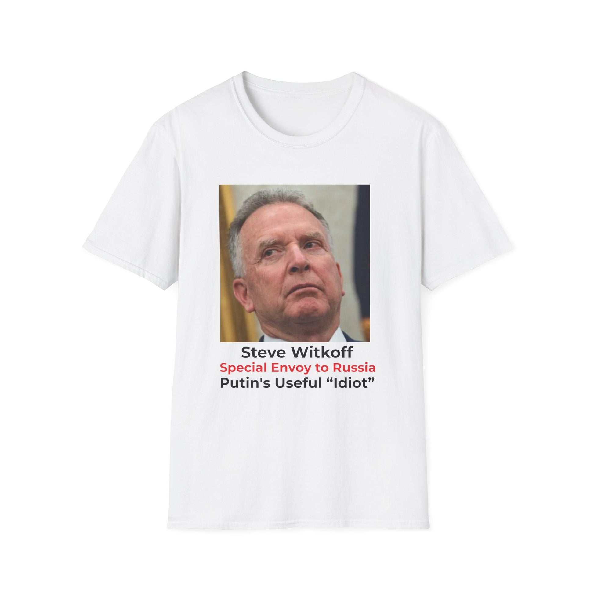 Make a bold statement with this satirical T-shirt featuring real estate mogul Steve Witkoff, reimagined as a “Special Envoy to Russia.” Despite having no apparent qualifications as a diplomat—other than being a New York real estate developer and golf buddy of President Trump—Witkoff has been appointed as the United States’ lead negotiator to end the war Russia started against Ukraine.
