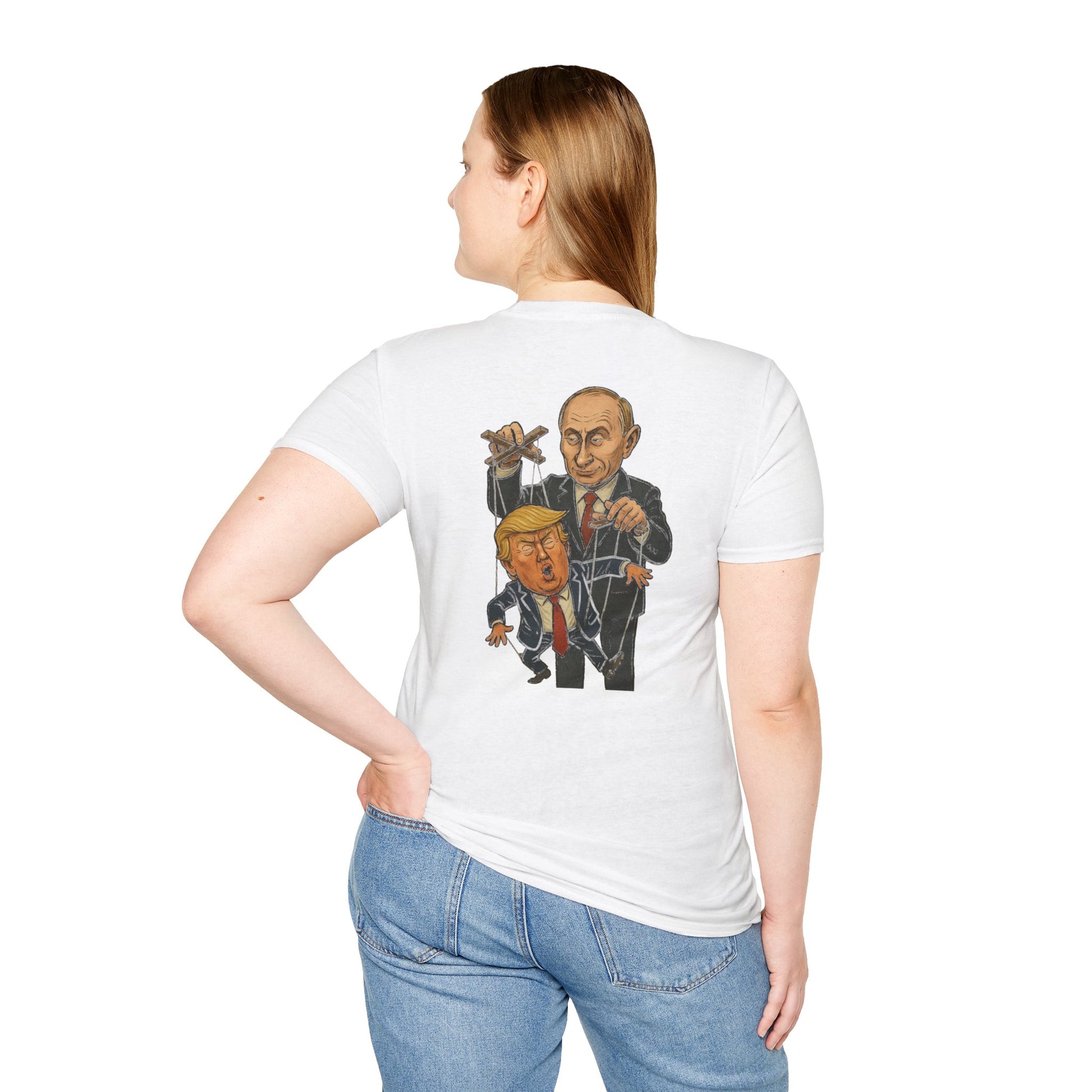 Expose authoritarian absurdity with this sharp two-sided political satire tee.