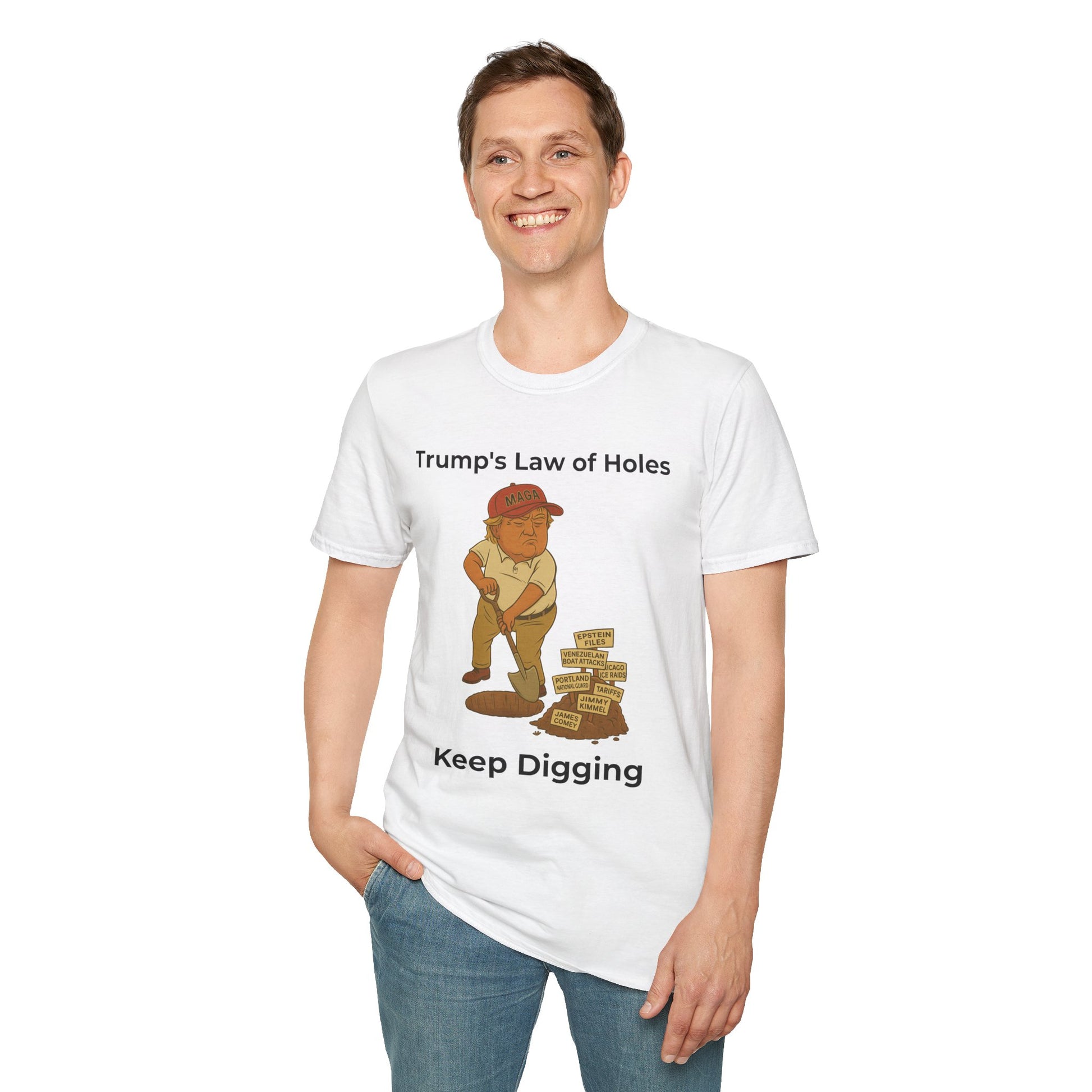 Perfect for political junkies, truth-tellers, and those who appreciate humor with bite, this shirt captures how Trump never seems to stop digging — no matter how deep the hole gets. Wear it to protests, gatherings, or anywhere you want to spark a laugh and make a point about accountability.
