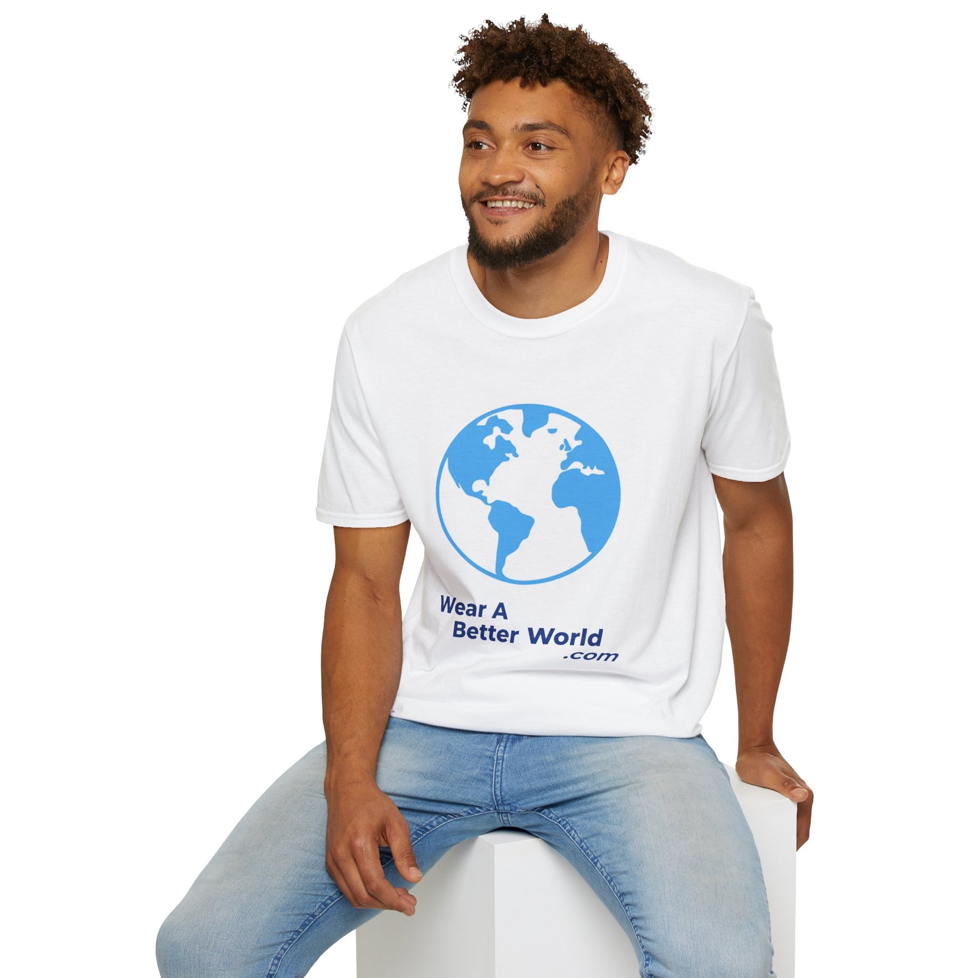 Front: A clean, minimalist globe logo in soft blue and white — your signature Wear A Better World mark. The design is crisp, balanced, and instantly recognizable, serving as a quiet but powerful symbol of global responsibility, truth, and civic engagement.