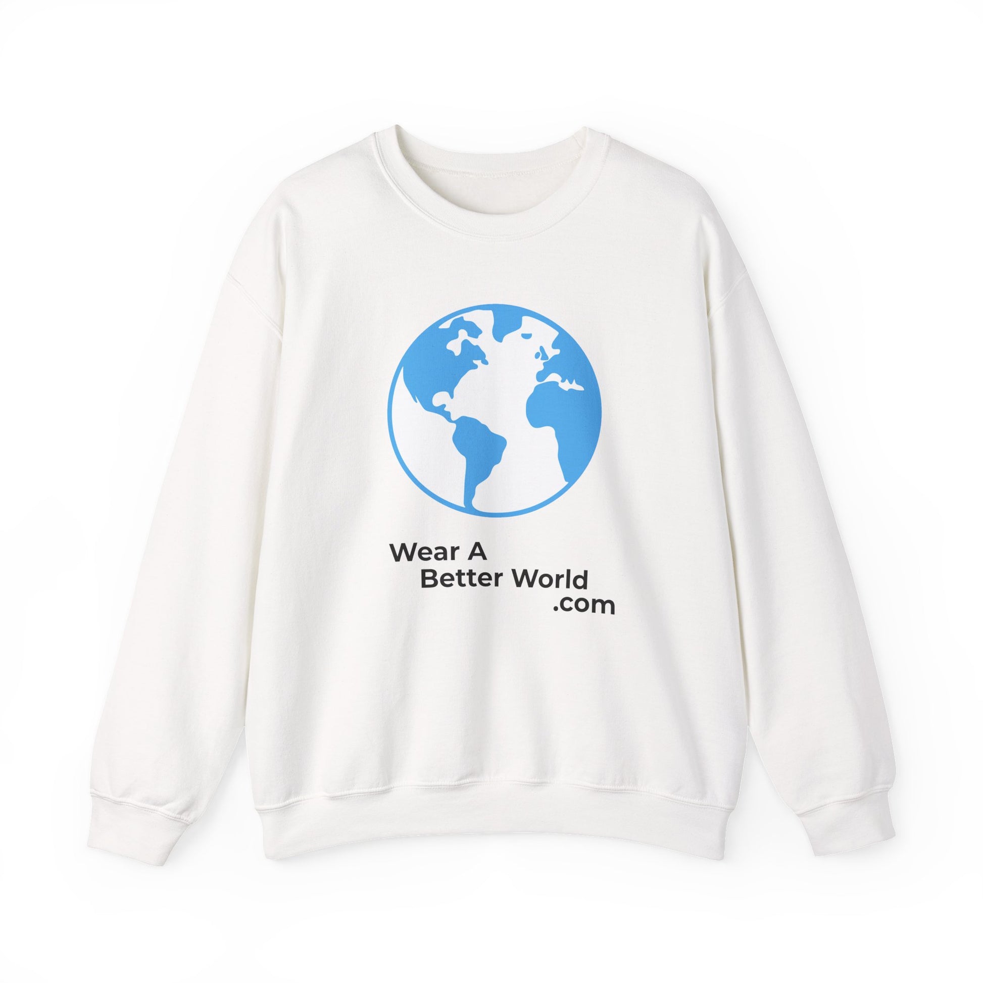 A clean, minimalist globe logo in soft blue and white — your signature Wear A Better World mark. The design is crisp, balanced, and instantly recognizable, serving as a quiet but powerful symbol of global responsibility, truth, and civic engagement.