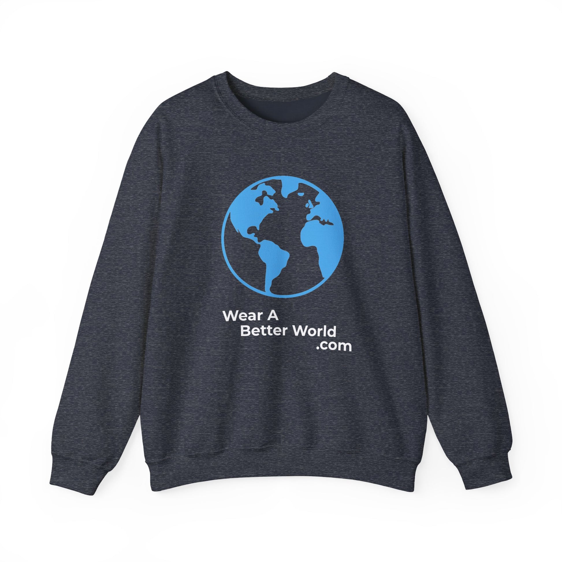A clean, minimalist globe logo in soft blue and white — your signature Wear A Better World mark. The design is crisp, balanced, and instantly recognizable, serving as a quiet but powerful symbol of global responsibility, truth, and civic engagement.
